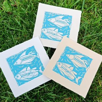 Please note that each card is hand printed and will be unique. It is likely you will receive a slightly different print to those pictured. The cards measure 5″ x 5″.